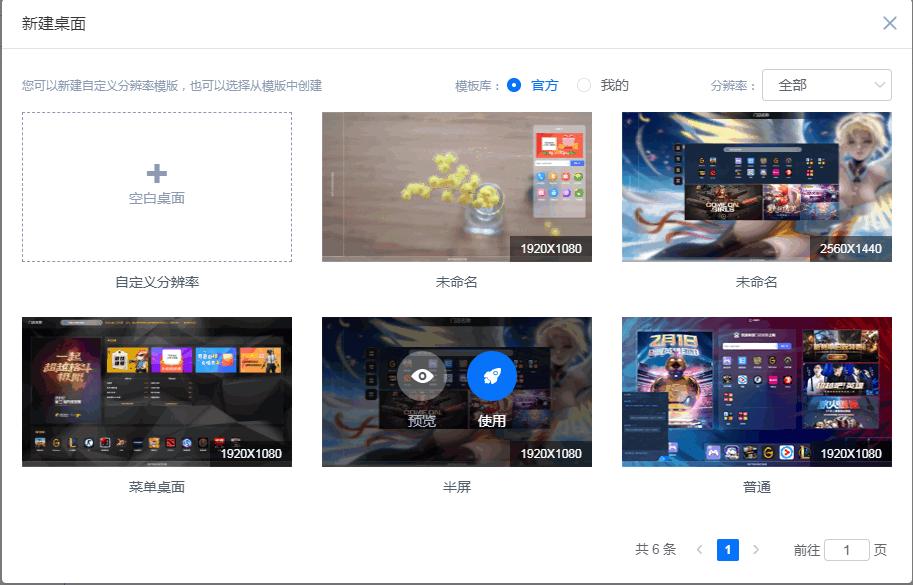 5、点击新建按钮后,在弹窗的窗口中,可以选择添加空白桌面或使用模版库提供的桌面模版。